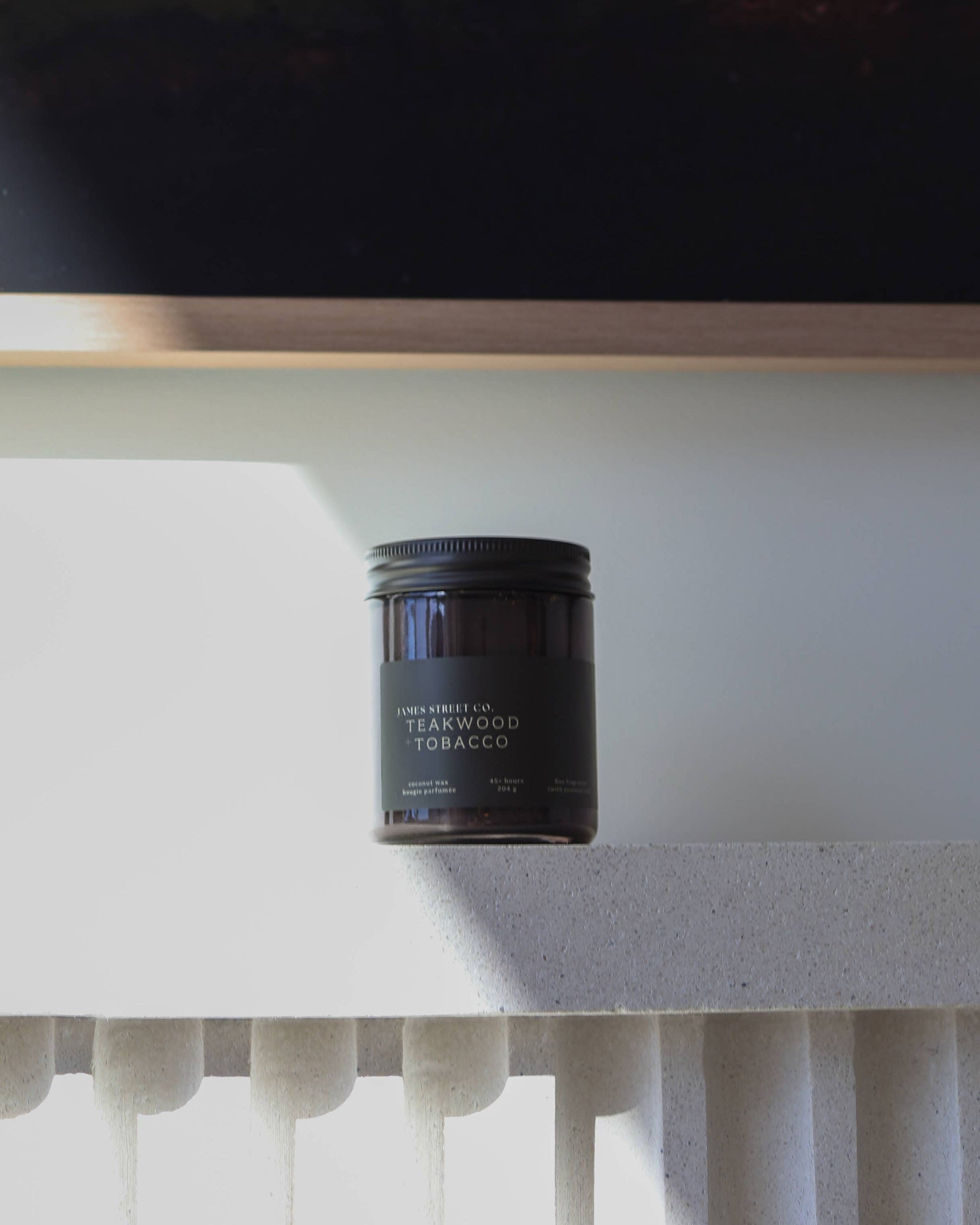 Teakwood + Tobacco is a complex fragrance with wide appeal. It leads with spicy top notes of allspice blended with smooth leather. Middle notes of tobacco leaf blend into the woody, deep base of sandalwood, amber, and peppercorn. It's the boyfriend scent, the year-round scent, the sophisticated but not over-powering scent that you need to have.